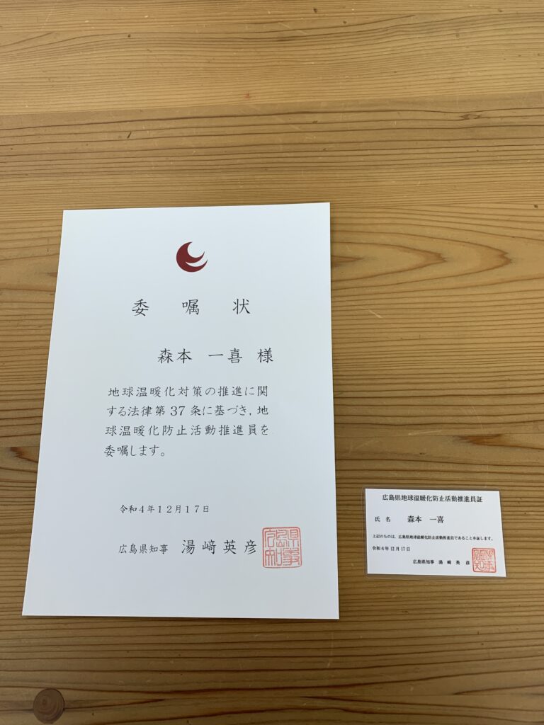 私一人の活動は微々たるものですが、この肩書に恥じぬよう少しでも地球温暖化防止に貢献できればと 少し気締めて活動していこうと思います