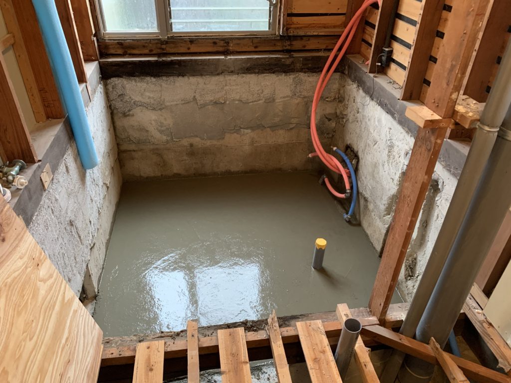 ユニットバスを据えるためには、洗面脱衣室の床を基準とした土間が必要。ここまでを設備屋さんが完璧に終わらせてくれました。