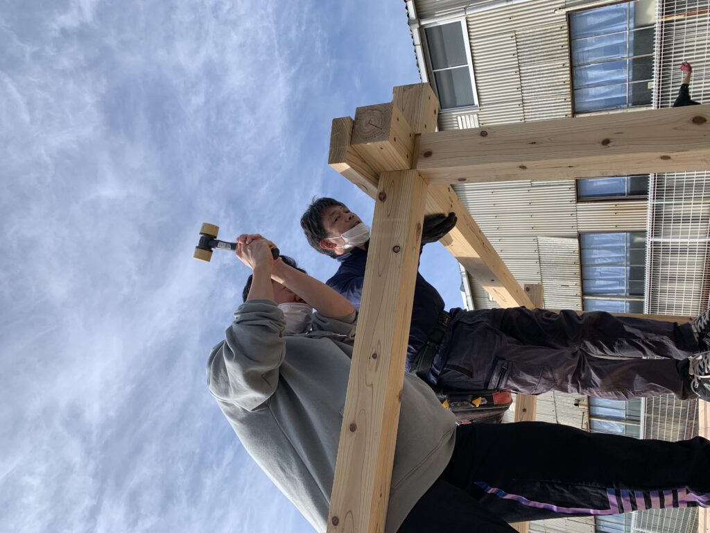 保育園での遊具作りも2日目