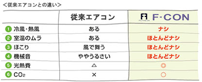 また、冬にいくら部屋の温度を上げても足元はヒエヒエ・・・ 冷え性にお困りの方も室温のムラがほとんど無いF-CON(エフコン)システムなら緩和されることでしょう。